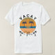 Vacay vibes con puesta de sol y palmeras diseñan camisetas para hombres. Disfrute de sus vacaciones de verano con esta camiseta que cuenta con una puesta de sol redonda y palmeras y vibraciones de estilo caligráfico.