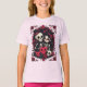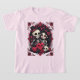 The color scheme is limited but striking: clean bone white, deep black, and saturated reds and pinks, giving the composition both a warm, romantic feel and a decidedly gothic edge. Día de los Muertos–inspired tableau that feels both tender and playfully eerie.