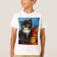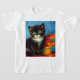 Camiseta con un hermoso gato de Van Gogh tuxedo! Este pequeño gatito se encuentra junto a una cesta de flores naranjas sobre una mesa roja. ¡Un gran regalo para los amantes del gato y para los coleccionistas holandeses de arte!
