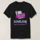 El color es muy bonito al natural, como la foto. El tejido es suave y de buena calidad. Sin defectos en el tintado, ni hilos sueltos o descosidos. Bien la impresión. Los bordes de las letras y el dibujo son nítidos, y el color contrasta muy bien con el de la camiseta.