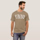 El color es muy bonito al natural, como la foto. El tejido es suave y de buena calidad. Sin defectos en el tintado, ni hilos sueltos o descosidos. Bien la impresión. Los bordes de las letras y el dibujo son nítidos, y el color contrasta muy bien con el de la camiseta.