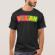 El color es muy bonito al natural, como la foto. El tejido es suave y de buena calidad. Sin defectos en el tintado, ni hilos sueltos o descosidos. Bien la impresión. Los bordes de las letras y el dibujo son nítidos, y el color contrasta muy bien con el de la camiseta.
