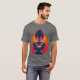 El color es muy bonito al natural, como la foto. El tejido es suave y de buena calidad. Sin defectos en el tintado, ni hilos sueltos o descosidos. Bien la impresión. Los bordes de las letras y el dibujo son nítidos, y el color contrasta muy bien con el de la camiseta.