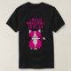 El color es muy bonito al natural, como la foto. El tejido es suave y de buena calidad. Sin defectos en el tintado, ni hilos sueltos o descosidos. Bien la impresión. Los bordes de las letras y el dibujo son nítidos, y el color contrasta muy bien con el de la camiseta.