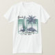 Verano de playa 2024. Fiesta de verano. Blue Green Beach Scene con Surf Board & Palm Tree.
