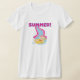 ¡Un diseño lindo para el verano, las características un chica cabelludo rubio en bañador y el anillo que viene abajo el tobogán acuático y el texto de las rosas fuertes y del azul que lee VERANO! Camisetas del verano, monos, baberos, tazas, tarjetas, bolsos, pegatinas, recuerdos, almohadas, y mucho más.