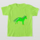 Esta linda camiseta muestra una imagen gráfica de un lindo unicornio irlandés. El unicornio es verde y luminoso, con una forma y una cola de dos tonos más de verde. Tiene un cuerno de oro brillante y cascos dorados. El unicornio tiene un ojo de anillo dorado y una sonrisa amistosa. Hay cuatro pequeñas rocas de champú en el lado del unicornio.