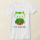 Esta camiseta verde de la cinta permite para que el corregir añada un mensaje conocido o personal a este búho lindo con una cinta verde.