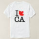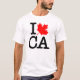 Gift your friend this shirt with the Canadian Maple Leaf in red. The text is a version of American Typewriter. The text is bold and black. You can read it as "I Love Canada". CA is the two letter ISO country-code for Canada.