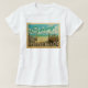 El diseño de esta postal antigua de Greetings From Myrtle Beach presenta una playa de arena con un hermoso agua turquesa del océano y sobre el mar, un cielo azul con nubes blancas onduladas. En estilo de viajes vintage.