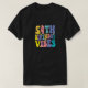 El color es muy bonito al natural, como la foto. El tejido es suave y de buena calidad. Sin defectos en el tintado, ni hilos sueltos o descosidos. Bien la impresión. Los bordes de las letras y el dibujo son nítidos, y el color contrasta muy bien con el de la camiseta.