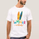 Vibes de verano surfeando camisetas masculinas que son perfectas para ayudarte a entrar en ese hermoso modo de vacaciones. Este diseño colorido presenta letras de colores vibrantes en estilo caligráfico.