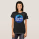 Camiseta femenina de estilo cursivo con vibraciones de verano con una puesta de sol retro azul redondo y diseño de palmeras. Esta camiseta femenina de verano es perfecta para ayudarle a disfrutar de sus vacaciones mientras se ve fresco.
