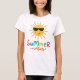 Las vibraciones de verano y el sol con gafas de sol diseñan camisetas femeninas que son perfectas para ayudarte a entrar en esa hermosa modalidad vacacional. Este diseño colorido presenta letras en colores vivos y un ilustracion de sol y vibraciones amarillas en caligrafía elegante.