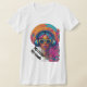 Este llamativo diseño de camisetas presenta un intrincado ilustracion de un cráneo humano con grandes auriculares por encima de los oídos. El cráneo se encuentra en un entorno vibrante de colores cambiantes y patrones florales, creando un ambiente dinámico y enérgico. Los tonos vivos, sobre todo en tonos naranja, rosa, violeta y azul, le dan un toque moderno al símbolo clásico del cráneo y le dan un toque musical, de vida y creativo que se entremezcla con