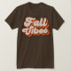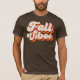 Este diseño de otoño inspirado en la retro destaca la frase "Caer vibraciones" en un tipo de letra audaz, al estilo 3D que inmediatamente llama la atención. El texto está recubierto de colores cálidos de otoño, incluidos naranjas ricos, rojos profundos y cremas suaves, lo que crea una sensación de profundidad y dimensión que hace que las palabras salgan del fondo. La tipografía de estilo vintage con sus bordes suaves y redondeados le da al diseño un toque nostálgico, que recuerda a la estética clásica de los años 70. Las divertidas sombras y los contrastes de color contribuyen a crear un atractivo dinámico.