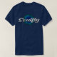 El color es muy bonito al natural, como la foto. El tejido es suave y de buena calidad. Sin defectos en el tintado, ni hilos sueltos o descosidos. Bien la impresión. Los bordes de las letras y el dibujo son nítidos, y el color contrasta muy bien con el de la camiseta.