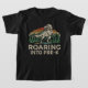 Un fresco de vuelta al diseño escolar de un dinosaurio t rex que dice "Roaring into Pre-K" para niños, hijos, hijas, hermanos nietos, niños, chicas, amantes de los dinosaurios, profesores de pre-K o estudiantes de pre-K para celebrar el primer día de clases.