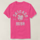 El color es muy bonito al natural, como la foto. El tejido es suave y de buena calidad. Sin defectos en el tintado, ni hilos sueltos o descosidos. Bien la impresión. Los bordes de las letras y el dibujo son nítidos, y el color contrasta muy bien con el de la camiseta.