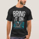 El color es muy bonito al natural, como la foto. El tejido es suave y de buena calidad. Sin defectos en el tintado, ni hilos sueltos o descosidos. Bien la impresión. Los bordes de las letras y el dibujo son nítidos, y el color contrasta muy bien con el de la camiseta.