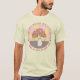 Una seta rosa y amarilla se alza en el centro, con algunas hojas de césped que crecen en el malecón. Detrás hay una viga de sol rosa y amarilla ondulada. En general, el dibujo tiene un ambiente vintage y groovic. En un círculo alrededor de la seta está esta cita:
