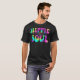 El color es muy bonito al natural, como la foto. El tejido es suave y de buena calidad. Sin defectos en el tintado, ni hilos sueltos o descosidos. Bien la impresión. Los bordes de las letras y el dibujo son nítidos, y el color contrasta muy bien con el de la camiseta.