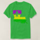 El color es muy bonito al natural, como la foto. El tejido es suave y de buena calidad. Sin defectos en el tintado, ni hilos sueltos o descosidos. Bien la impresión. Los bordes de las letras y el dibujo son nítidos, y el color contrasta muy bien con el de la camiseta.