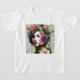 Hermosa mujer de la época victoriana, flacuta de estilo antiguo, rodeada de tetas de periódico y bonito rosa y rojo, efecto de collage de papel.