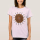 Un caleidoscopio tipo girasol compuesto de violines decora esta camisa