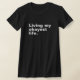 Camiseta Viviendo mi vida más cómoda. diseño de textos bási