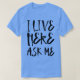 Vivo aquí pregúntame. Impresionante Gran recuerdo divertido regalo de regalo vestido de ropa de pareja para mamá, papá, hermano, hermana, esposa, esposo, hijo, hija, papá, mamá, papá, abuelo, abuela tía tío su hermano, damas.
