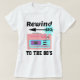 Rebobinado De vuelta a los años 80, este diseño presenta un estilo retro de los años 80 en rosa y azul con un texto que dice: "Rebobina de vuelta a los 80".