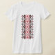 Ukrainian national embroidery print on t-shirt. Ukrainian warriors, the legendary kozaks, used to wear such embroidery. Be brave like Ukrainian. Stand with Ukraine. Red and Black national Ukrainian ornament.