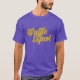 El color es muy bonito al natural, como la foto. El tejido es suave y de buena calidad. Sin defectos en el tintado, ni hilos sueltos o descosidos. Bien la impresión. Los bordes de las letras y el dibujo son nítidos, y el color contrasta muy bien con el de la camiseta.