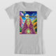 This celestial-themed artwork features a portrait of a young girl with flowing hair and a garment adorned with a large, glowing star.