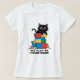 A design featuring a black cat sitting on a game board with scattered game pieces. The cat has large white circular eyes and a simple black silhouette style. The game board contains various colorfus game elemente including dice, cards, and game tokens in blue orange, and other bright colors. The text "WE PLAY BY HOUSE RULES is in black capital letters at the bottom of the design. The entire design is printed on a dark gray t-shirt material. The game board is depicted ina playful cartoonish style with a white backliground showing the various game pieces scattered around the edges The overall composition has a casual, gaming-themed aesthetic with a focus on the contrast between the sleek black cat and the colorful game elments
