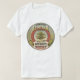 Anuncio de época para la destilería de encino en vivo de Schmidlapp, whisky de borbón de cobre destilado. La imagen muestra una etiqueta de barril de whisky bourbon representando un roble de gran extensión con picos de montaña bajos visibles más allá; marco circular embellecido con un patrón geométrico, grano y orejas de maíz.