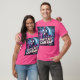 El color es muy bonito al natural, como la foto. El tejido es suave y de buena calidad. Sin defectos en el tintado, ni hilos sueltos o descosidos. Bien la impresión. Los bordes de las letras y el dibujo son nítidos, y el color contrasta muy bien con el de la camiseta.