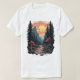 Escape to a world of tranquil beauty with this stunning landscape illustration. This artwork captures a serene mountain valley at sunset, where a peaceful river reflects the warm, golden light of the setting sun. Framed by towering pine trees and vibrant autumnal foliage, the scene is a breathtaking tribute to the majesty of the wilderness. The clean lines and graphic style give it a modern yet timeless feel, reminiscent of classic national park posters. This design is perfect for nature lovers, hikers, adventurers, and anyone who finds peace and inspiration in the great outdoors.