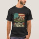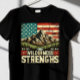 Aquí hay un diseño rústico de camisetas de estilo vintage que presenta un paisaje montañoso escarpado con una bandera norteamericana envejecida y la frase "Fuerza salvaje" 🏔️ 🇺 🇸 ✨