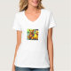 Camiseta con cuello en V de mujer, Negro, XL de adulto