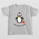 This t-shirt features a cute penguin wearing a striped winter scarf, with a festive red parcel ready for christmas gifting. The accompanying caption is "CHRISTMAS IS COMING" or you can edit this for your own wording.