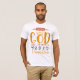 This bright and uplifting apparel design features the powerful inspirational quote, "With God All Things Are Possible," from the Bible (Matthew 19:26). The design is set on a clean white background, utilizing a mix of bold, stylized typography in vibrant orange and muted gray/blue. The word "GOD" is emphasized in a large, prominent font and is topped with a small, stylized golden crown graphic, symbolizing divinity and royalty. The phrase is rendered in a mix of playful, modern, and distressed fonts, with small design elements like dashes and banners adding a contemporary touch. This versatile T-shirt design is a perfect way to express faith, hope, and optimism, serving as a daily reminder of strength and belief. It is suitable for personal wear, Christian gatherings, or as a thoughtful gift for someone needing spiritual encouragement and a declaration of faith.