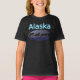 Una noche de invierno a la luz de la luna; una manada de lobos en la caza. También aparece el texto que dice "Alaska" en azul brillante y blanco.