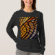This women's Basic Long-Sleeve T-Shirt is both stylish and comfortable. It comes in a variety of colors and sizes, with a butterfly wing design in shades of orange, gold, blue, and black. This unique t-shirt will add color and interest to your style!