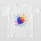 This eye-catching woman’s t-shirt features a dynamic, multi-color paint splatter design that looks like a beautiful experiment straight from the Color Crush Lab. With a high-energy mix of electric blue, sun-kissed orange, and vivid magenta, this tee is designed for those who don’t just wear fashion—they wear art.