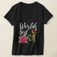 Camiseta con cuello en V de mujer, Negro, XL de adulto