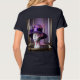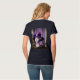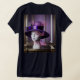 This is a custom navy women's basic v-neck t-shirt. The t-shirt has an AI Art World's Best Mom image on the front and back. The picture features a purple hat on a mannequin. The mannequin's face has lavender cosmetics. This t-shirt is a customizable shirt you can personalize. The script World's Best Mom is on the image on the front and back in pink. You can change the words by clicking the Personalize button.