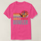El color es muy bonito al natural, como la foto. El tejido es suave y de buena calidad. Sin defectos en el tintado, ni hilos sueltos o descosidos. Bien la impresión. Los bordes de las letras y el dibujo son nítidos, y el color contrasta muy bien con el de la camiseta.
