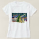 Navidades Magic con dos Golden Retreivers muestra la estrella de Belén guiando a tres sabios mientras Santa y sus renos vuelan por la noche y una paloma de paz se cierne sobre la luz de las estrellas. Un árbol de Navidad y un muñeco de nieve añaden a los símbolos de la temporada navideña.